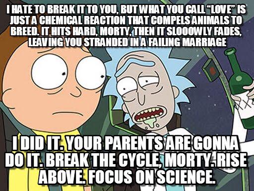Very painful, but this is life. Maybe at that moment, you dont see this, but you will see it in the future. Love is not just a chemical reaction! He is a man above love (what people call 'love' is just a chemical reaction that compels animals to breed. What people calls love is just a chemical reaction. Sometimes they are very depressing, but in this way, i express my bad thoughts. But you can certainly debate it. There's no harm in that; And while you are at it, why not wear — and play with — some slick rick and morty swag? Rick and morty is different from other cartoons that have existed because of the witty and sarcastic way it addresses everyday life. Sign in to leave a comment. It hits hard, morty, then it slowly fades, leaving you stranded in a failing your parents are gonna do it. Many things can be very painful.